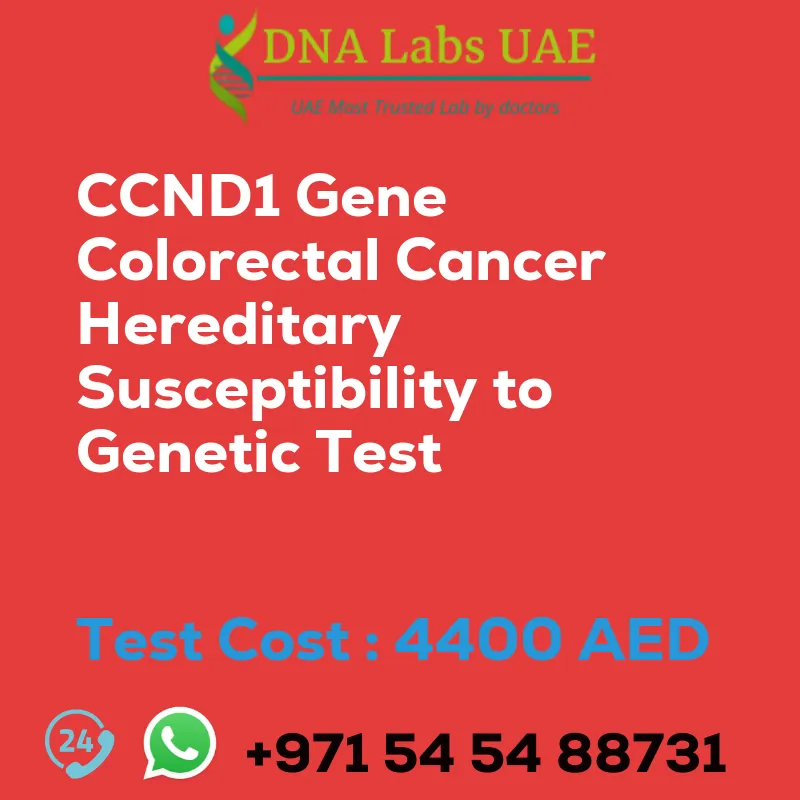 At DNA Labs UAE, we offer the CCND1 Gene Colorectal cancer hereditary susceptibility to Genetic Test at a price of 4400.0 AED. This test is used to determine the risk of developing colorectal cancer based on genetic factors.