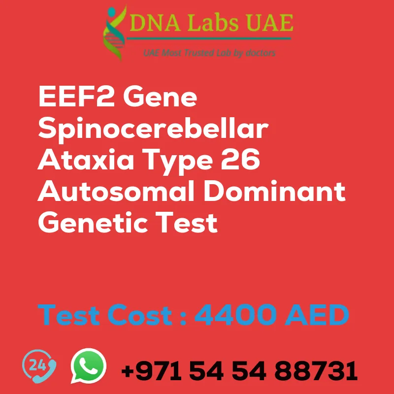 The EEF2 Gene Spinocerebellar Ataxia Type 26 Autosomal Dominant Genetic Test is priced at 4400.0 AED.